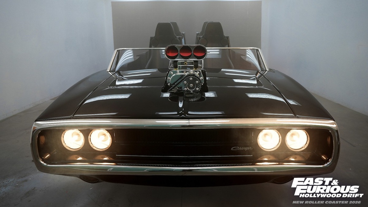 Fast & Furious: Hollywood Drift will be located on the Upper Lot of Universal Studios Hollywood. Guests will queue within an expansive garage-like structure before settling into one of four ride vehicles, designed to look like the iconic cars from the films. The ride vehicle modeled after Dominic Toretto’s 1970 Dodge Charger is currently on display at the park.